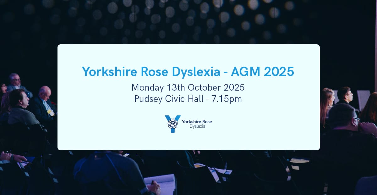 Join us at the Pudsey Civic Hall for our Annual General Meeting 2025. Get involved in the future of Yorkshire Rose Dyslexia – everyone is welcome!